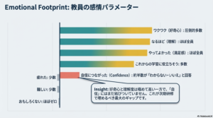 この研修だけですぐに取り入れていこうということにはならないはずですが、これは健全なことであり、学年軸、教科軸、学校イベント軸、生活指導軸、先生の働き方改革軸などなど、様々な視点で生成AIの利活用に関する議論が活性化することを願っていますし、本校教員の前向きな意欲・熱量をもってすれば、間違いなく実現していくことができるであろうと確信もしました。